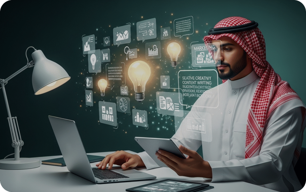 نكتب محتوى يُقنع، يُؤثر، ويُحوّل الجمهور إلى عملاء. نُصيغ رسالتك بلغة تُعبّر عن هويتك وتترك انطباعًا دائمًا